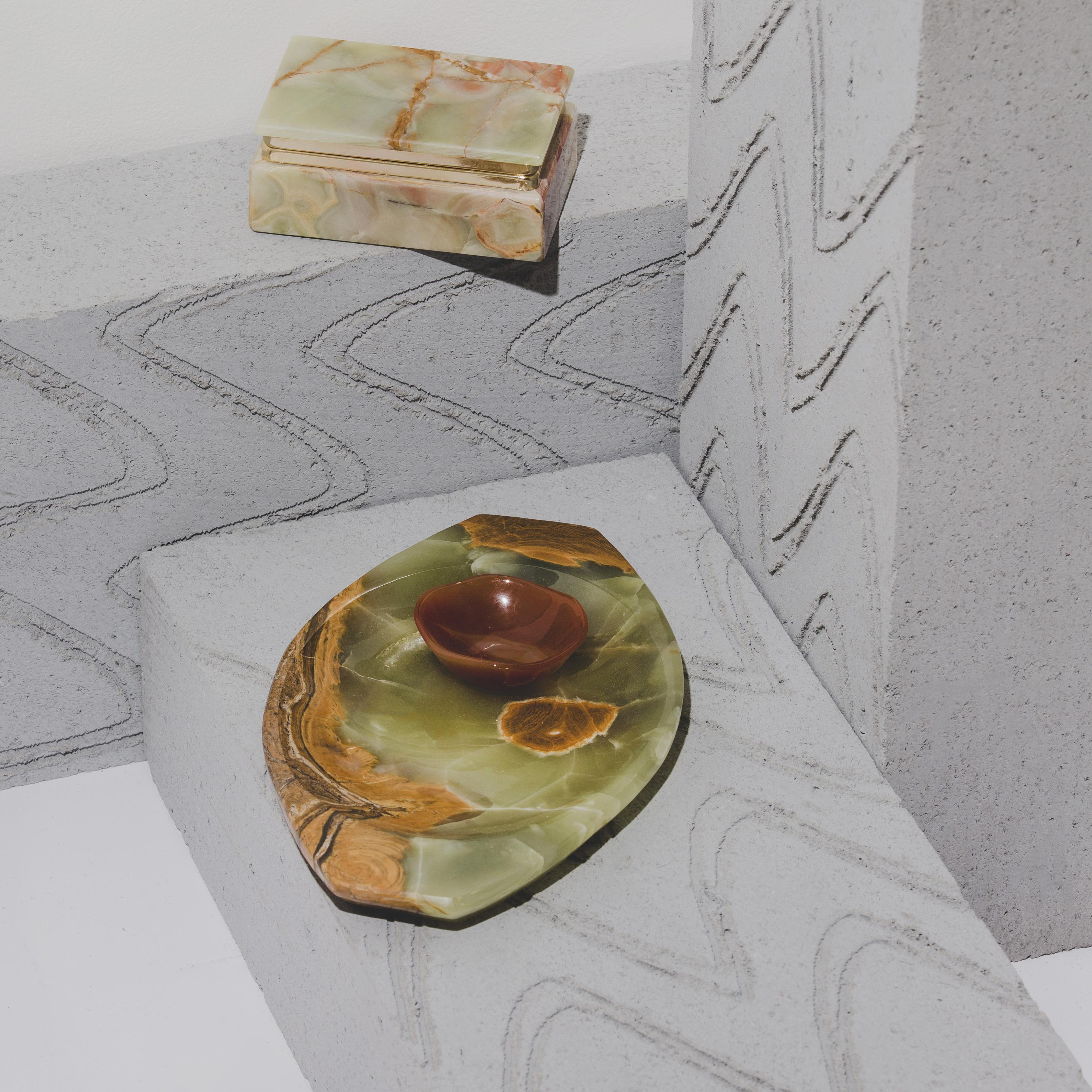 Jade Green marbled fluorite flat dish.