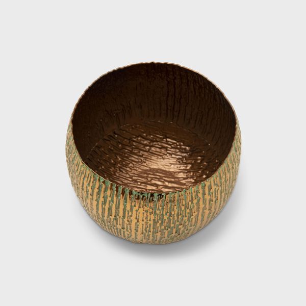 Handcrafted bronze vase with a turquoise finish.