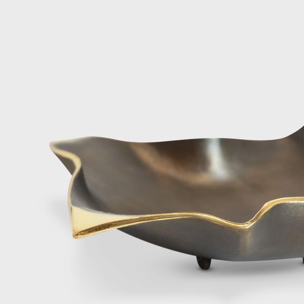 Handmade brass folded bowl, in gold & dark chestnut.